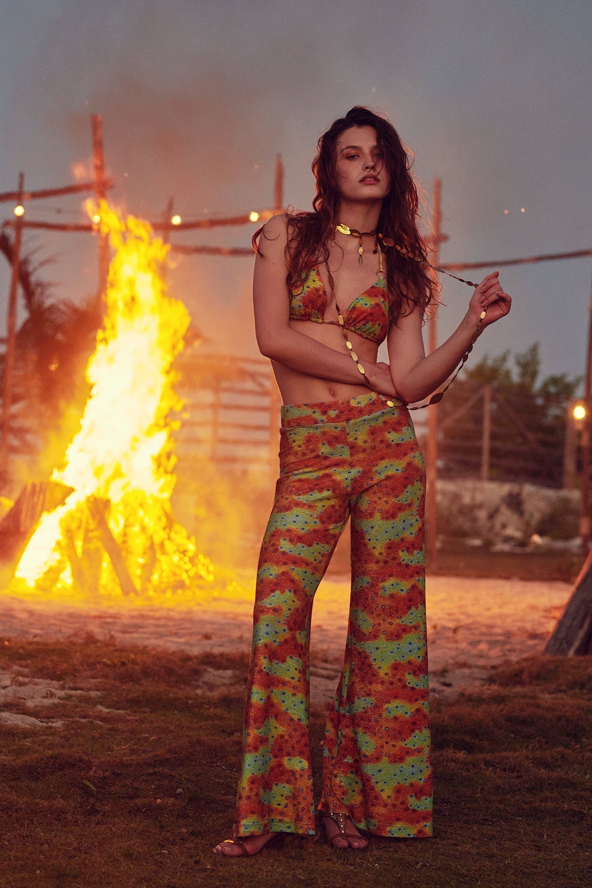 These pants, with a flared and fluid cut add a retro touch to your look . Perfect for standing out on any occasion. Our exclusive Lollypop print takes on a seamouflage version to be as one with the ocean.