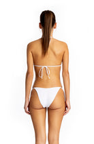 This white Bikinin tri-top features a halter neck design with decorative stone like accents, exudes elegance and sophistication, making it a versatile wardrobe staple. Complete the look with a Borealis cover-up.